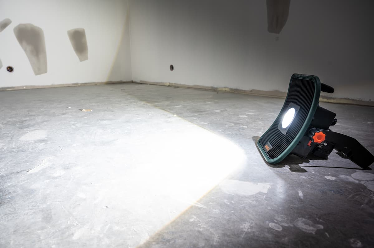 Blaze 6500 DP kan drives med batterier fra elektroverktøy eller med kabel. Adaptere for Milwaukee, Dewalt, Bosch og Makita følger med. Lampen har et sterkt, rettet lys og er ekstremt holdbar.